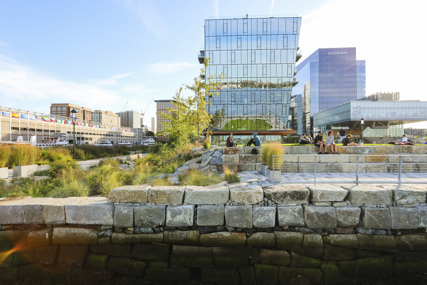 Principal Eric Kramer communicates our intention to “create a space apart from the bustle of the city.” Tishman Speyer selected Reed Hilderbrand to create a leading example of development meeting Boston’s Chapter 91 code, a legislative condition that requires all new waterfront developments allocate half of site for public access.
