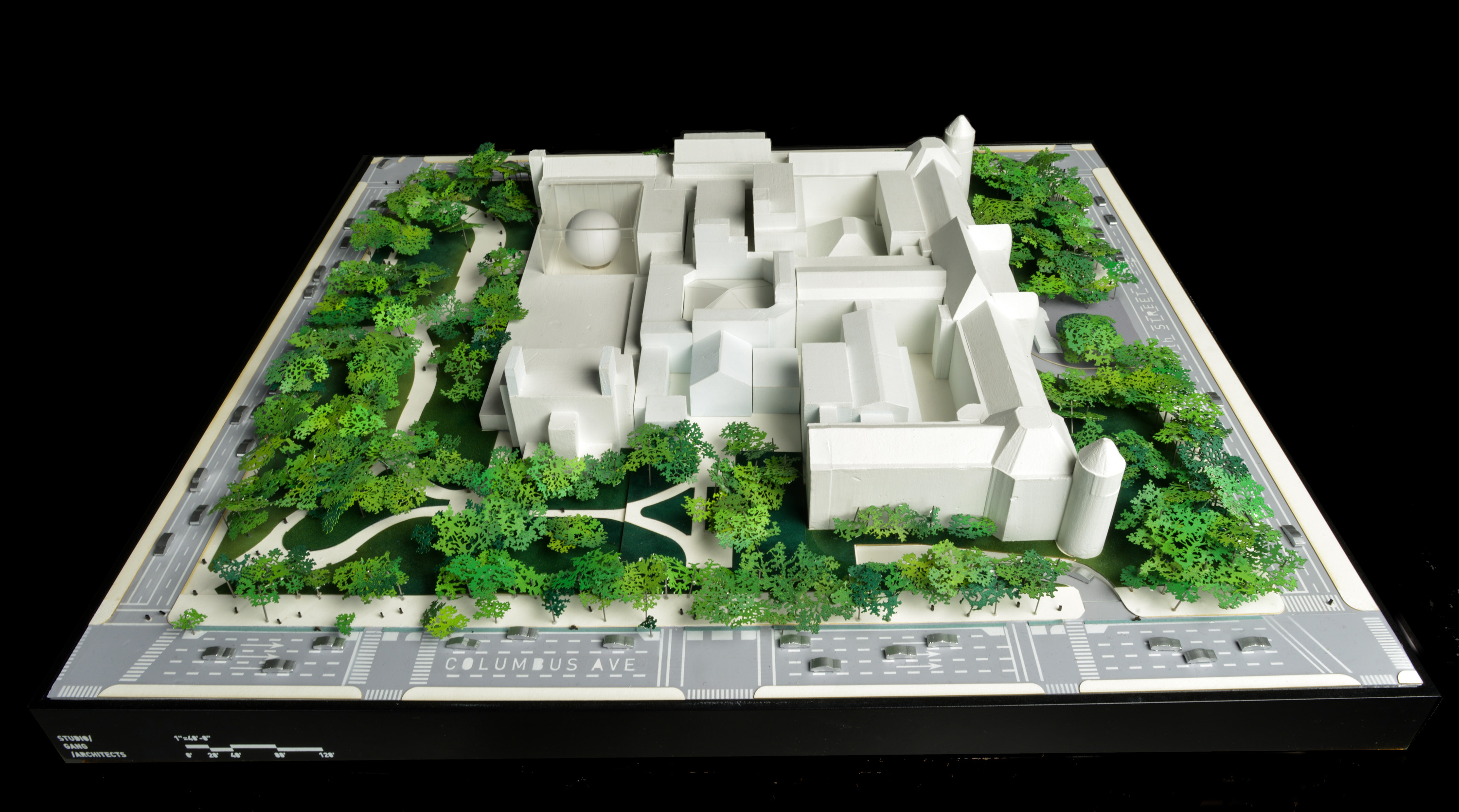 Our work amplifies this inspiring landscape’s character — undulating topography, impressive rock outcroppings, mature canopy trees — while also embedding within it an expanded visitor experience for the Bruce. A new courtyard at the center of the Great Hall frames for visitors the essential character of Connecticut’s coastal landscape and its vegetation. A multi-purpose entry plaza is a venue for exterior events and a seating area for the new Museum café. A new pedestrian walkway draws visitors through the site and encourages an appreciation for those unique natural features and an expanded exterior art collection. The landscape serves also to re-orient the Museum relative to the surrounding parkland and the wider Greenwich community.